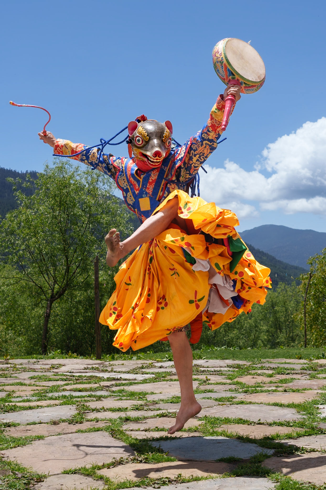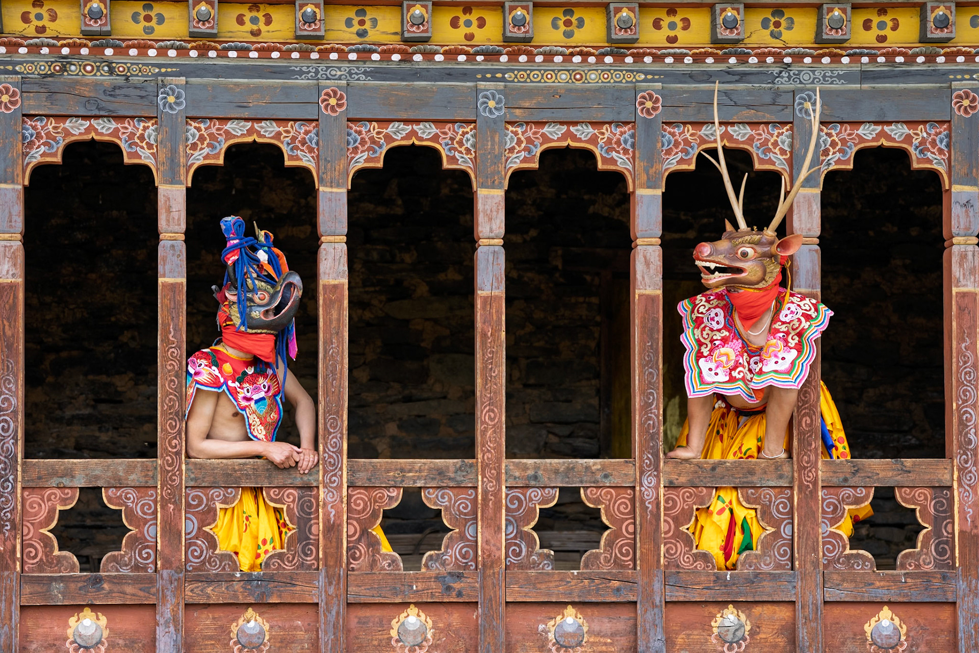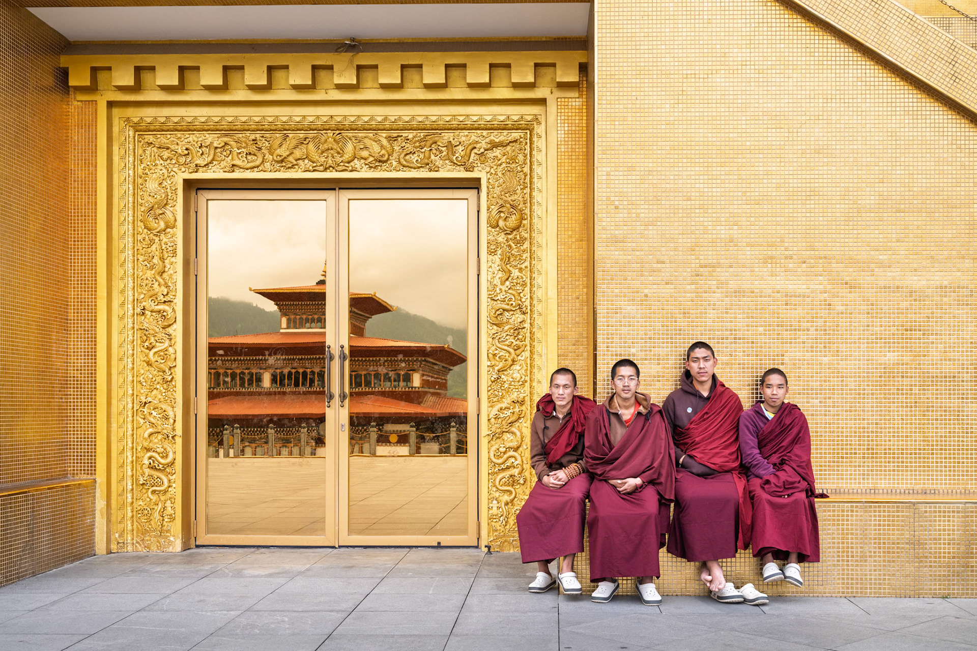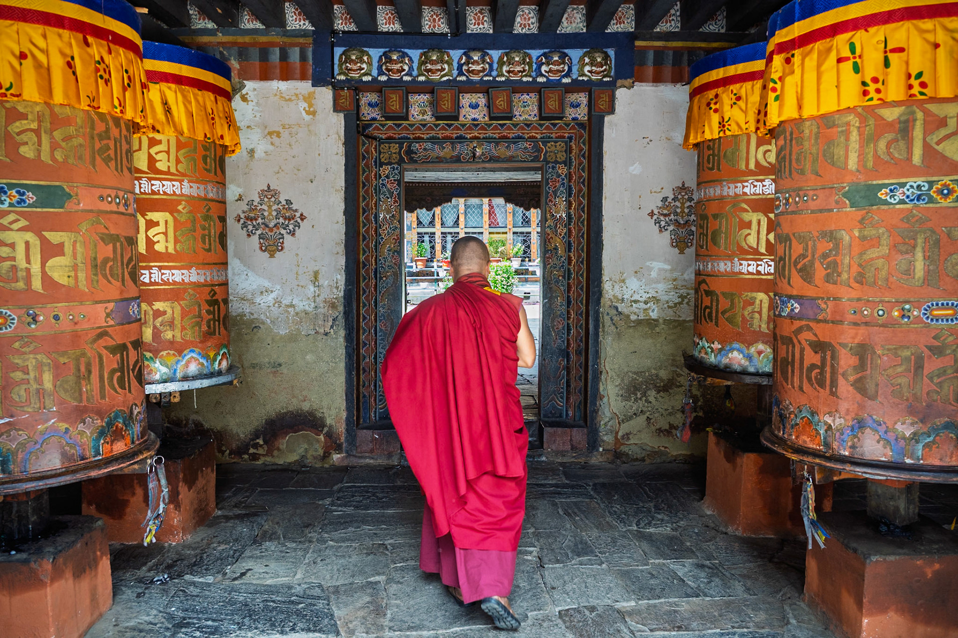 Sweeping Monks at Gangtey Monastery